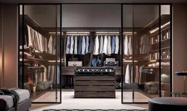 小户型要单独拿出一间房做衣帽间或许有些吃力。但是小户型并不是没有春天!小户型可根据户型量身打造,定制一款别出心裁的衣帽间。床头、床尾、甚至卧室的任何一个地方,安上一款隔断或者玻璃门,即能呈现一款衣帽间。