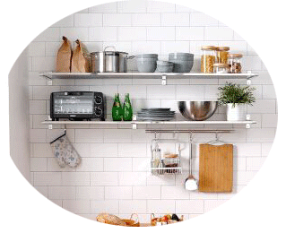 传统的厨房空间设计,各种挂杆隔板置物架等外挂产品层出不穷。