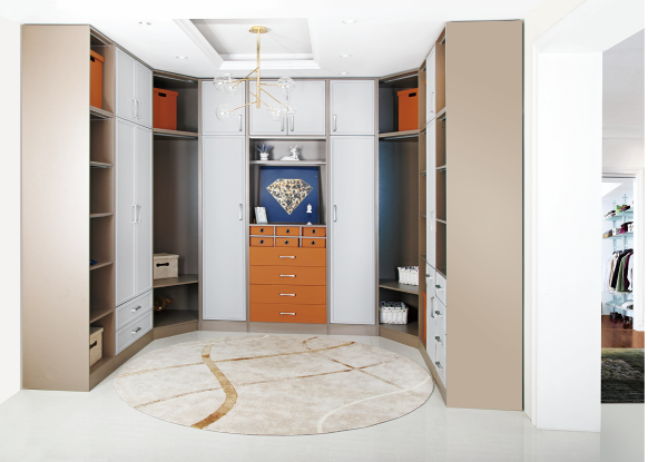 半弧形的拉手,是欧美风设计元素,简约纯粹的质感与颜色,让衣柜更显精致华丽。