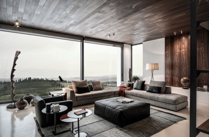 沙发常常分为:两人座、三人座、L型沙发以及组合沙发,豪宅、大平层空间可以毫不犹豫的选择L型及组合沙发。另外,单人扶手沙发是可以用来做点缀的。