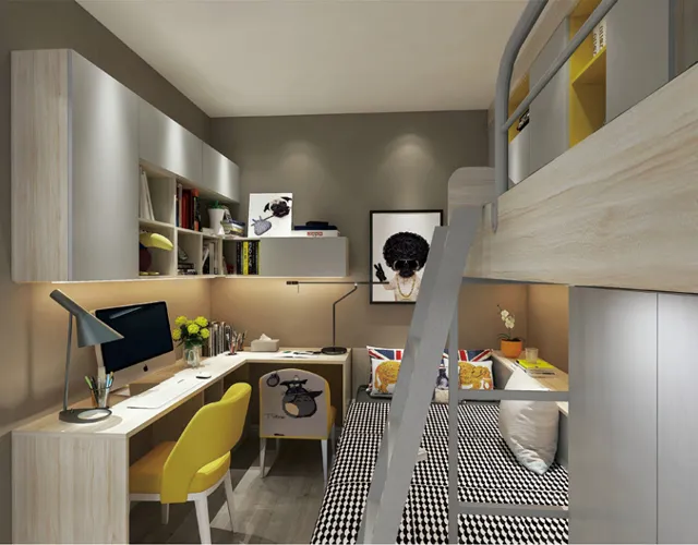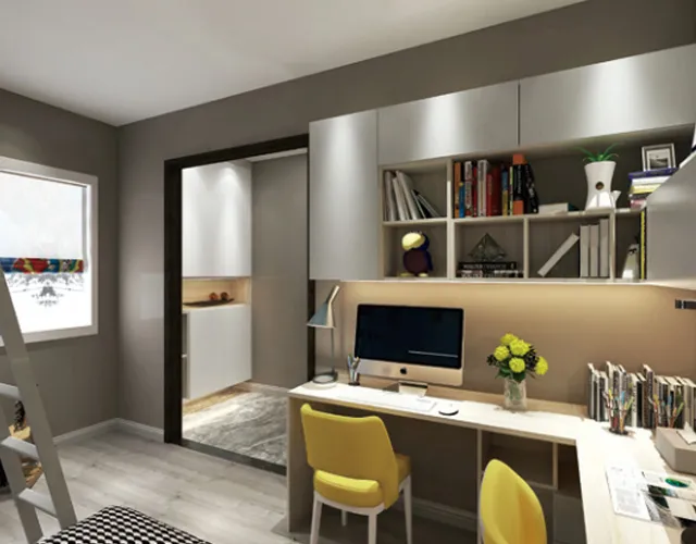 科菲笛将儿童房打破常规布局,以创新的手法将飘窗打造成另一片小天地,用心为孩子设计出一个光线充足的学习空间。儿童房合理规划收纳空间,能将书籍、玩具、以及衣物有序的存放,既增加了居室的空间感、便捷性,还给孩子更多的活动范围,提供一个舒适自在的成长环境。
