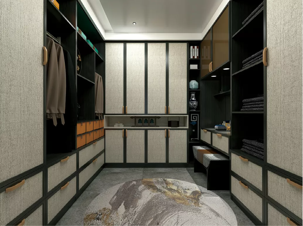 步入式衣帽间最适合定制在卧室,一般选择将主卧卫生间进行改造,定制成步入式衣帽间,既实用美观,又不浪费相应空间。