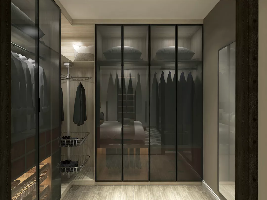 小户型要单独拿出一间房做衣帽间或许有些吃力。但是小户型并不是没有春天!小户型可根据户型量身打造,定制一款别出心裁的衣帽间。床头、床尾、甚至卧室的任何一个地方,安上一款隔断或者玻璃门,即能呈现一款衣帽间。