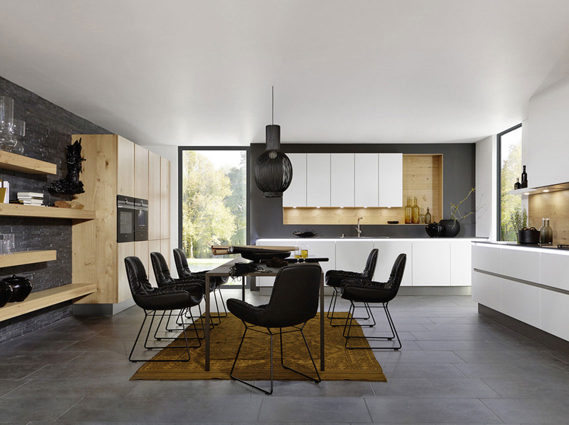 开放式厨房中增加一个延展餐桌设计,不仅可以充分利用空间,让功能分区更合理,还能让空间充满情调,符合当下对于精致生活的追求。